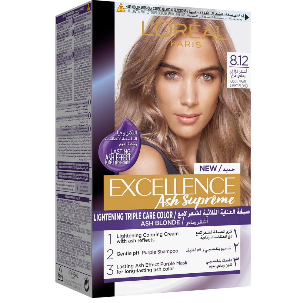 لوريال صبغه اكسيلانس 8.12 اشقر لؤلؤى رمادى فاتح